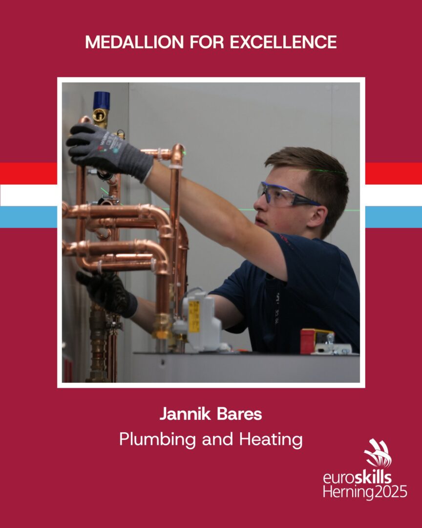 Aufgrund der sehr guten Ergebnisse bei der Gesellenprüfung und durch den Sieg bei den Luxskills 2024, durfte Jannik an der Euroskills (Europameisterschaft der Berufe) 2025 in Dänemark teilnehmen und hat eine ganz besondere Auszeichnung erhalten: Er wurde mit der „médaille d’excellence“ geehrt. Das zeigt mal wieder das hohe Niveau der Ausbildung bei Barthel!